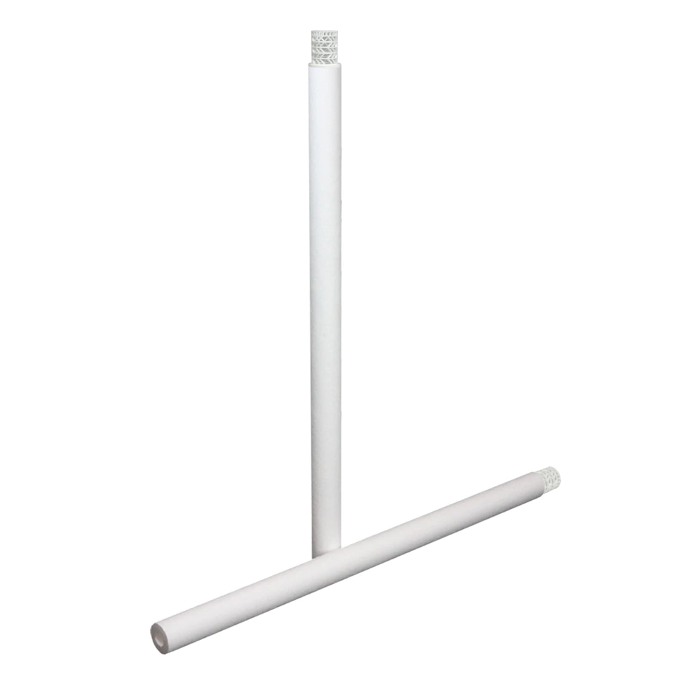 Elemento filtrante de polipropileno liso, terminal com mola, poroso de cor branca.